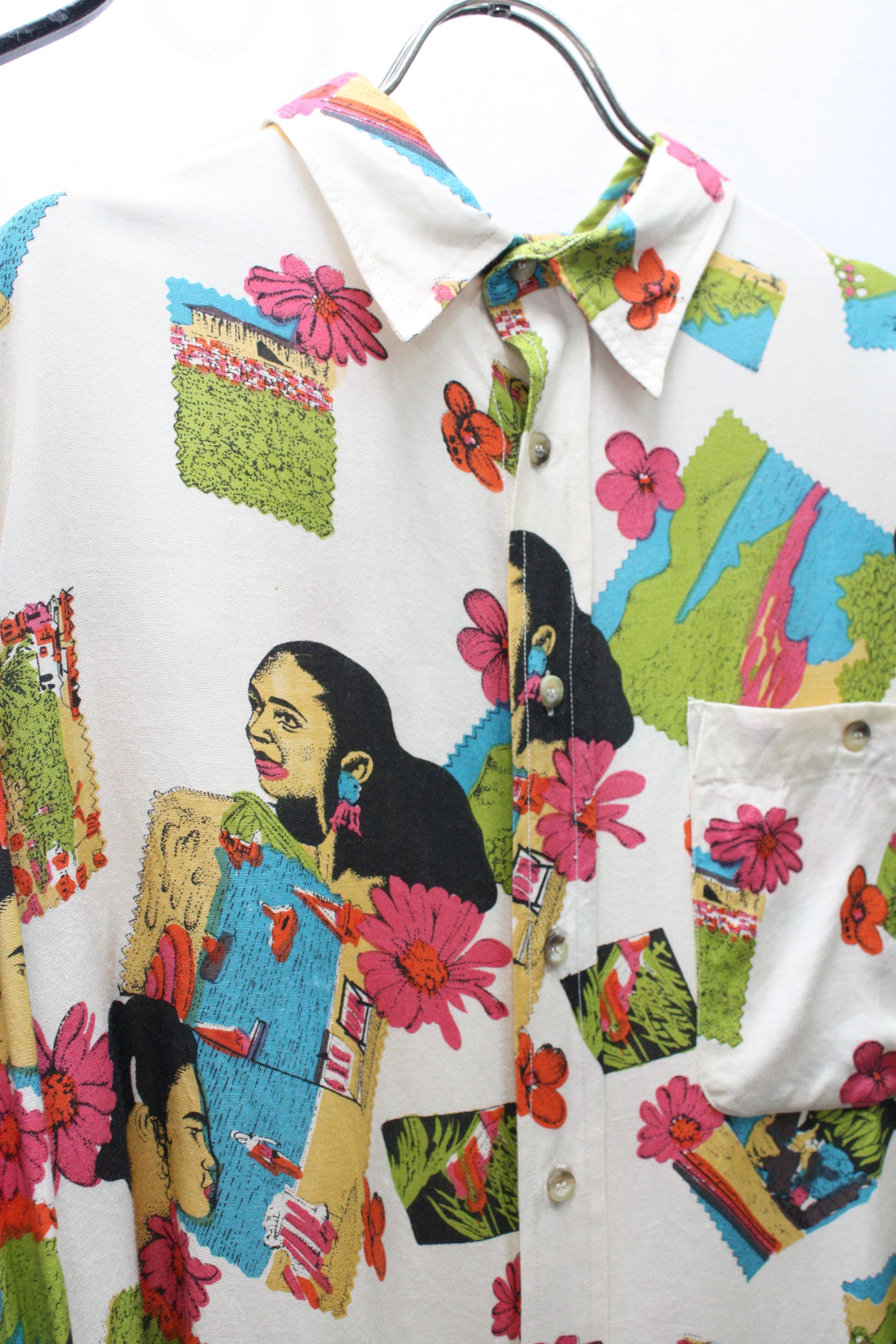 ヴィンテージらしい配色とシュールなポートレートモチーフがクセになる1枚。